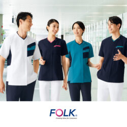 フォークのジップスクラブの特徴は、動きやすさや、脱ぎ着のしやすさです。ジップタイプのため着替えが簡単で、メークがウエアにつく心配がありません。吉原さんは導入後の感想を「見た目がすっきりして、きちんとした印象を出すことができていると思います」と語ります。