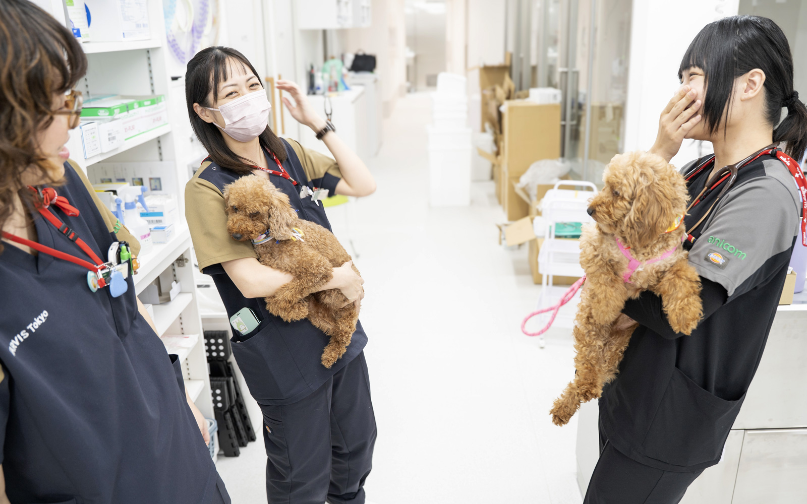 「アジア初」の最先端動物医療施設が何種類も着比べて選んだフォークのユニフォーム