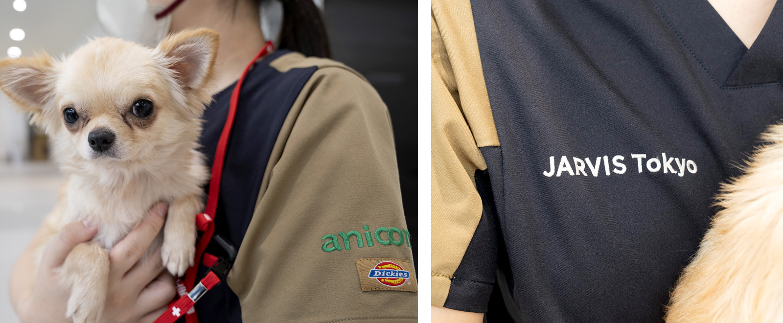 質の高いユニフォームは、スタッフのプロ意識を高めるだけでなく、飼い主の方に安心感を与えるという重要な役割も担います。洗練された装いは、JARVISどうぶつ医療センター Tokyoが提供する医療の質の高さを視覚的に伝え、信頼関係の構築にも繋がると考えているそうです。