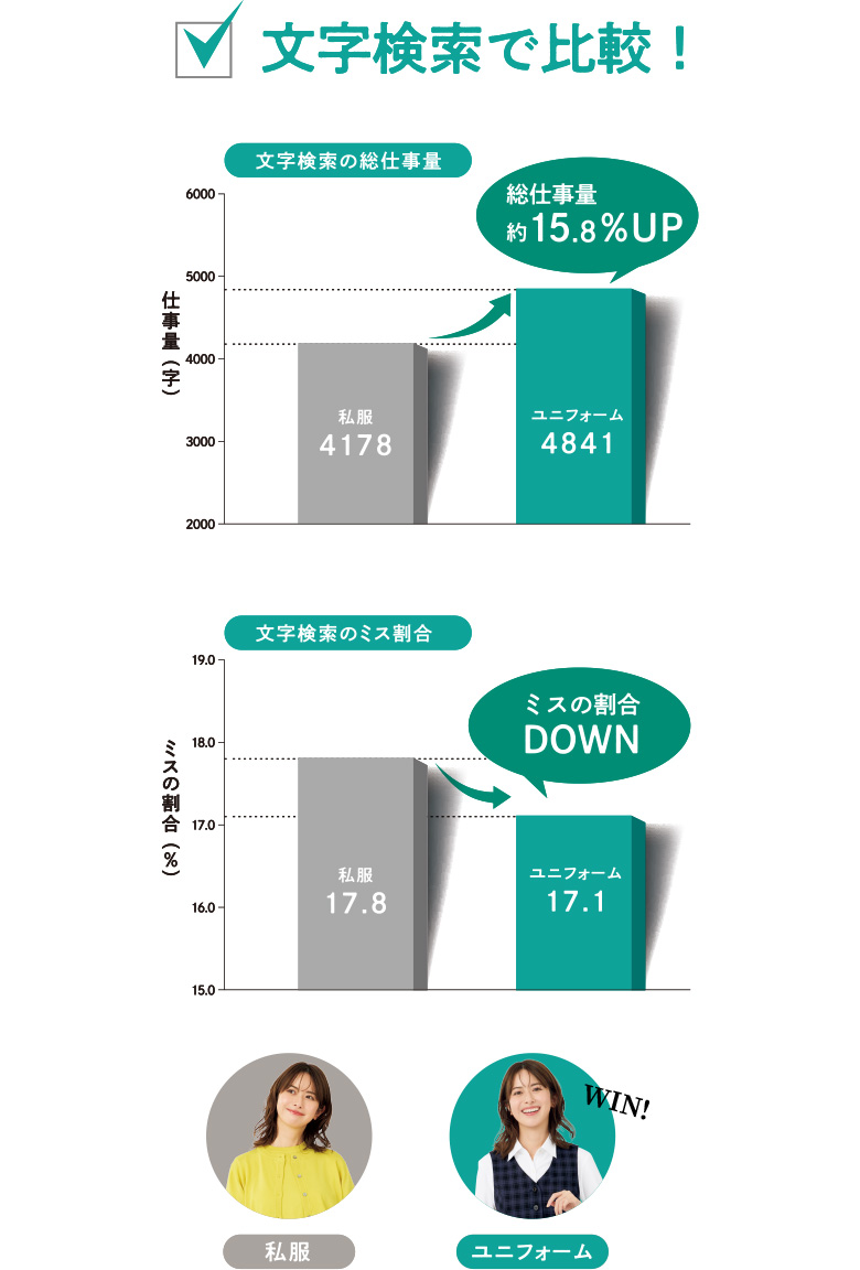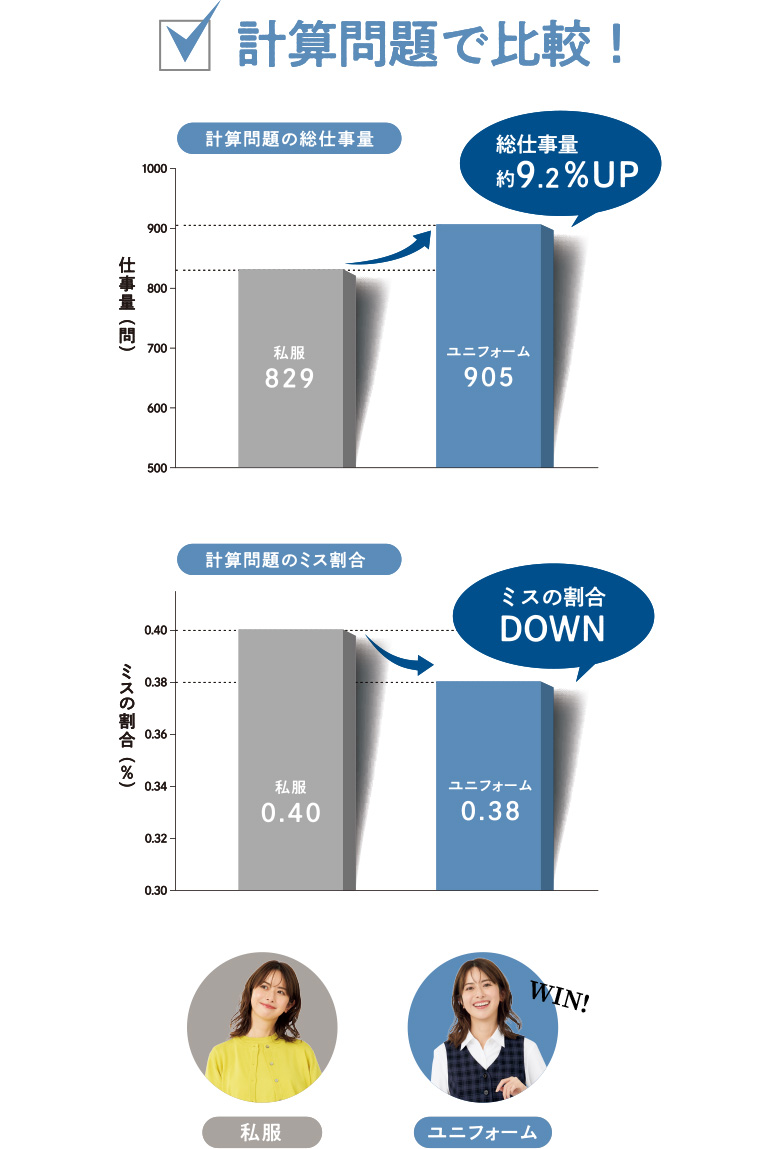 事務服の着用で作業効率が約15.8%アップ!ミスも軽減!