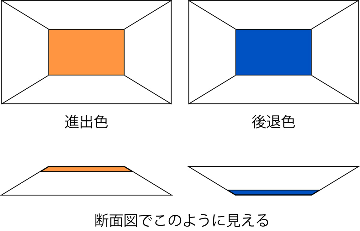 色の違いによって前にとび出してみえたり、後ろにさがってみえたりします。