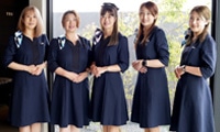 スカーフポケット付/後ろファスナー/六分袖/袖折り返し可/左胸ポケット/右腰ポケット/名札ポケット