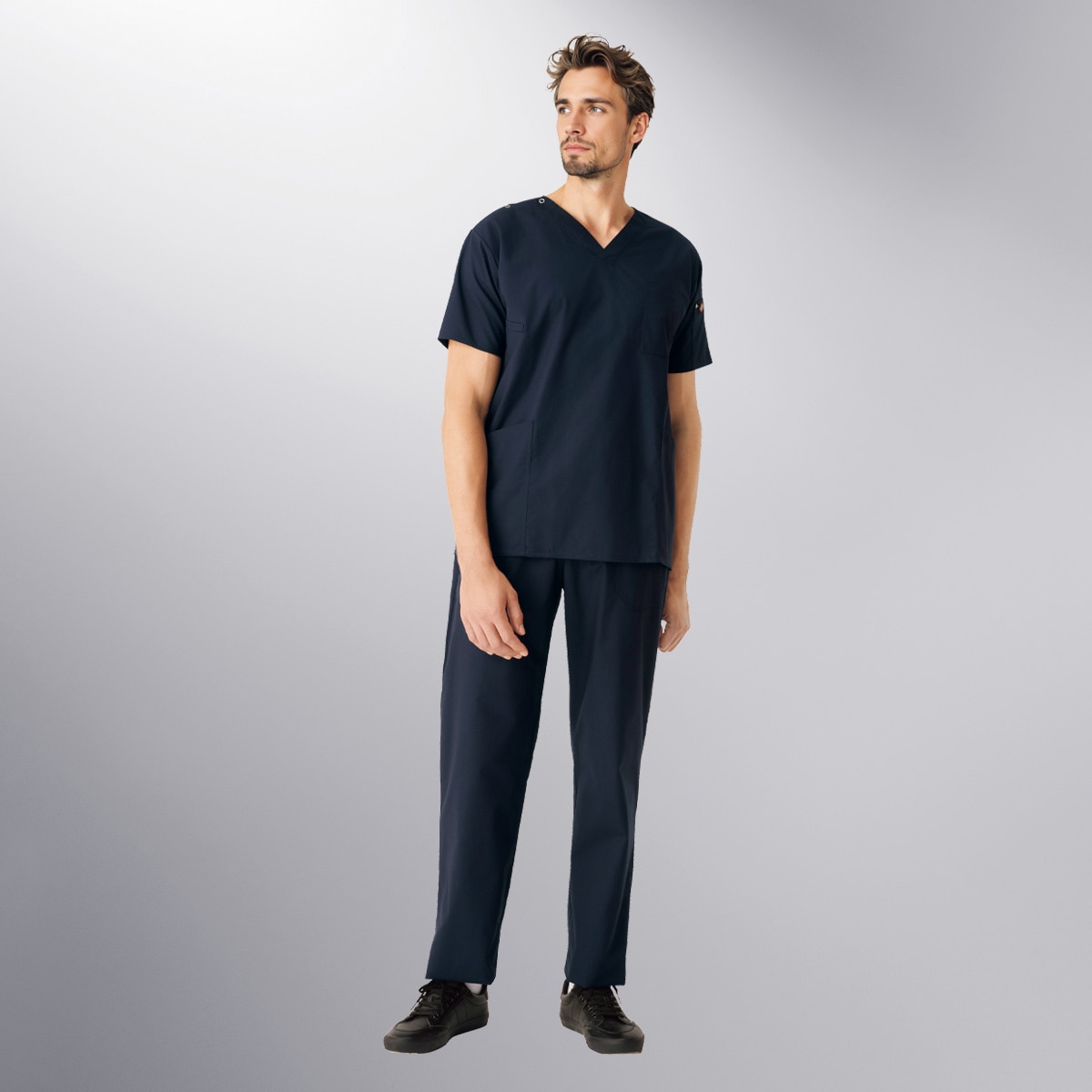 スクラブ:左袖ポケット/左胸ポケット/右脇箱ポケット/両腰ポケット