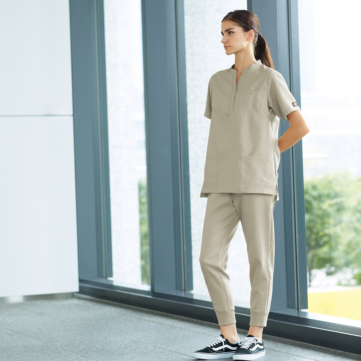 スクラブ:左胸箱ポケット/両腰ポケット/右脇ループ付