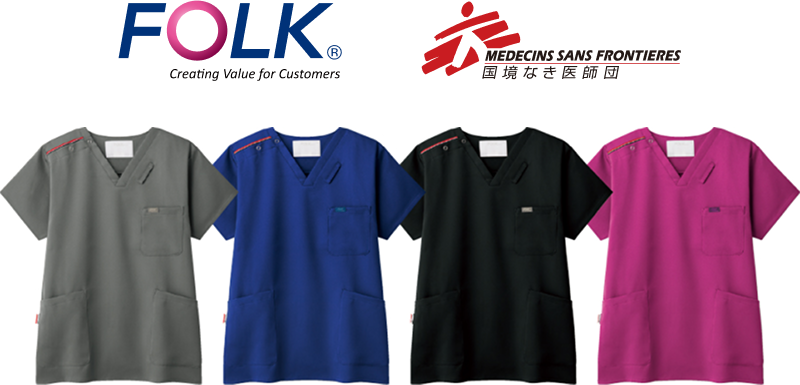 フォークがお届けする「国境なき医師団への寄付金付きスクラブ」は、1着のご購入につき300円を寄付できるスクラブです。多くの医療従事者に賛同いただき、愛用されています。